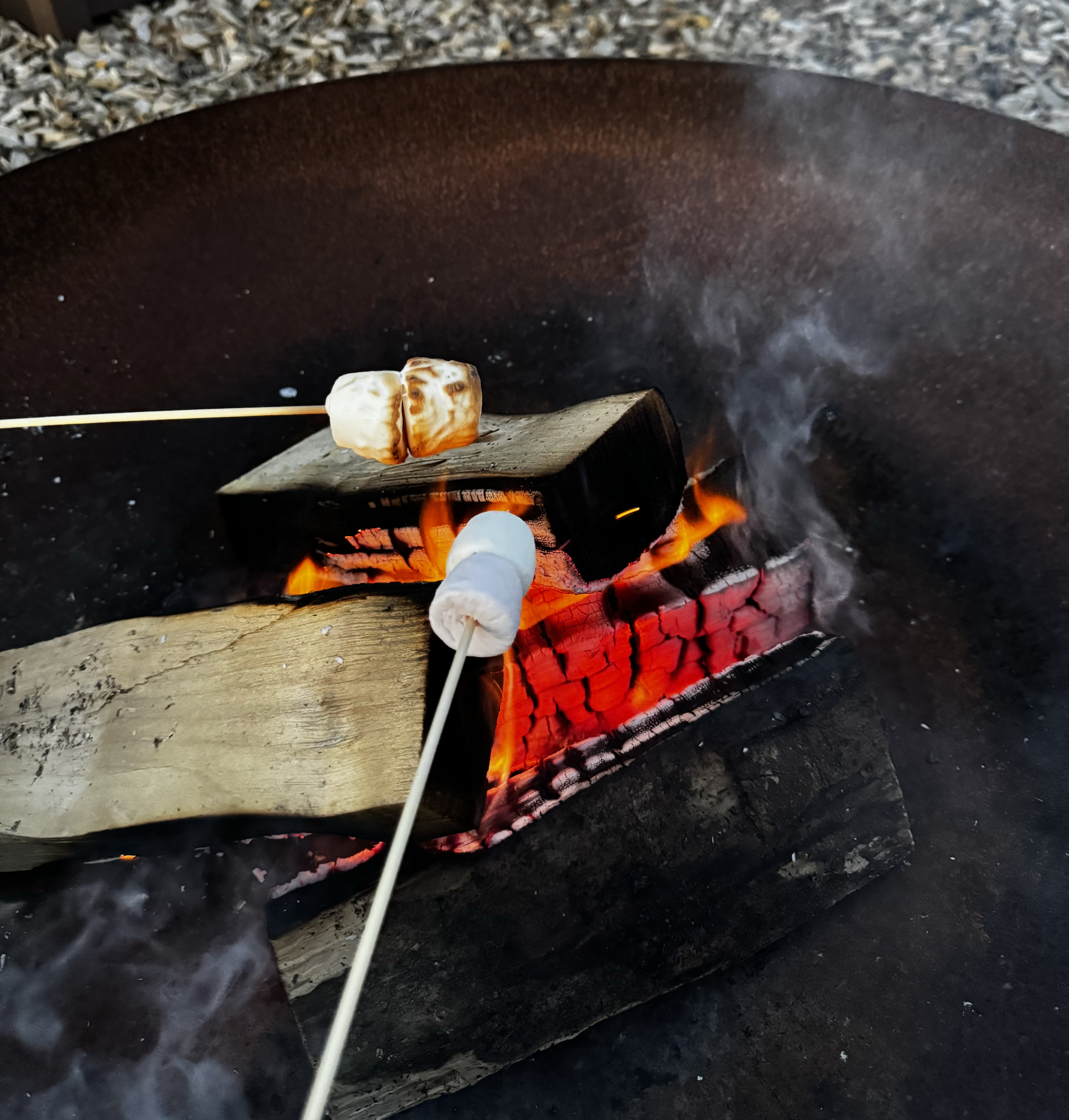One of the best parts of a campfire night is toasting marshmallows. We provide long skewers, making it easy and safe to roast them over the fire. Toast them until they’re golden and gooey, or if you like them extra crispy, let them char a bit for that smoky flavour.
