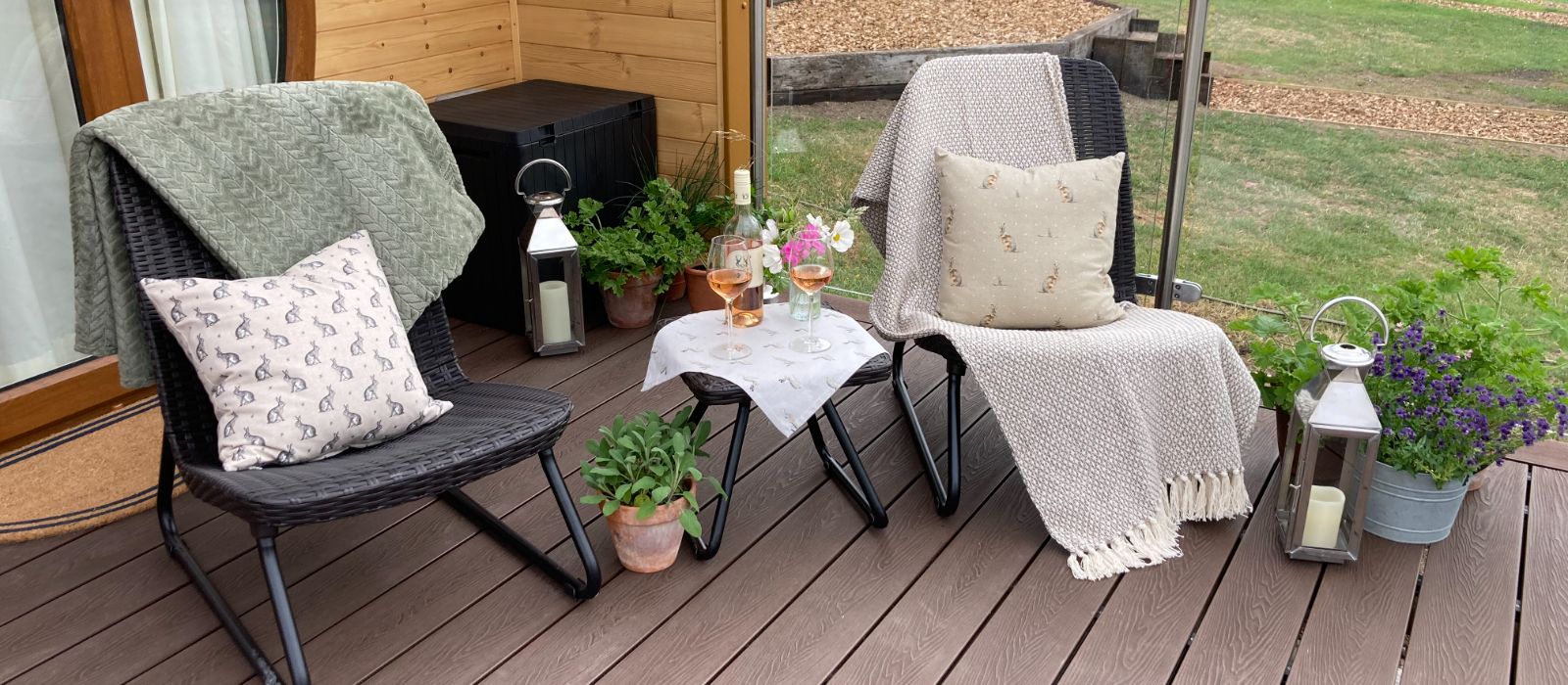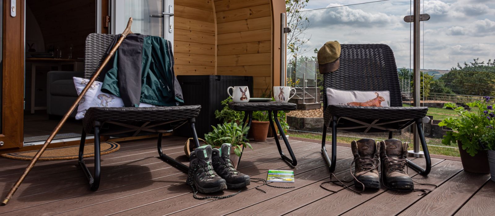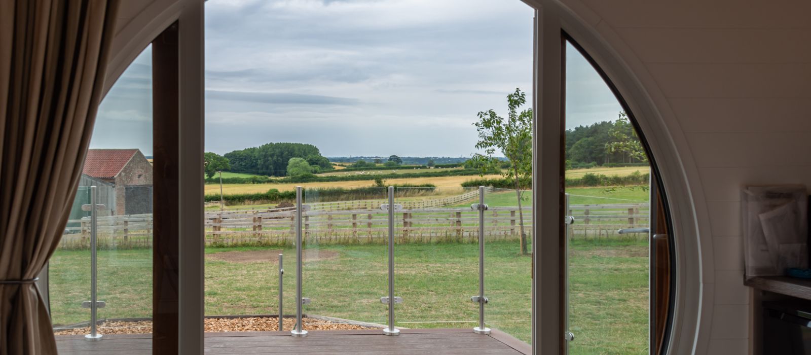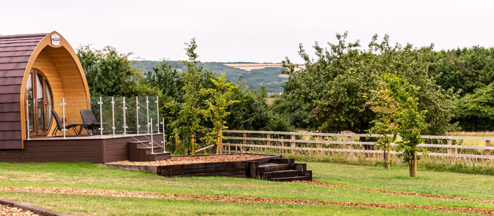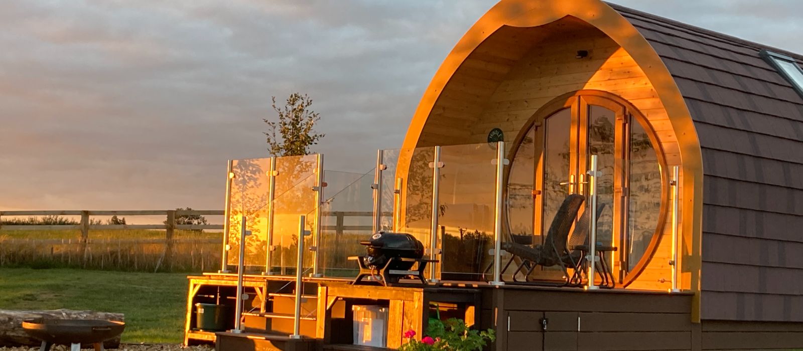 Fully insulated and with underfloor heating, our pods are perfect for year-round glamping. The lounge area has a comfortable sofa, extendable dining table and chairs and a wall mounted Smart TV. The fitted kitchenette includes a ceramic hob, fridge with ice compartment, microwave, kettle, coffee maker, toaster and a range of crockery, glassware and pans.